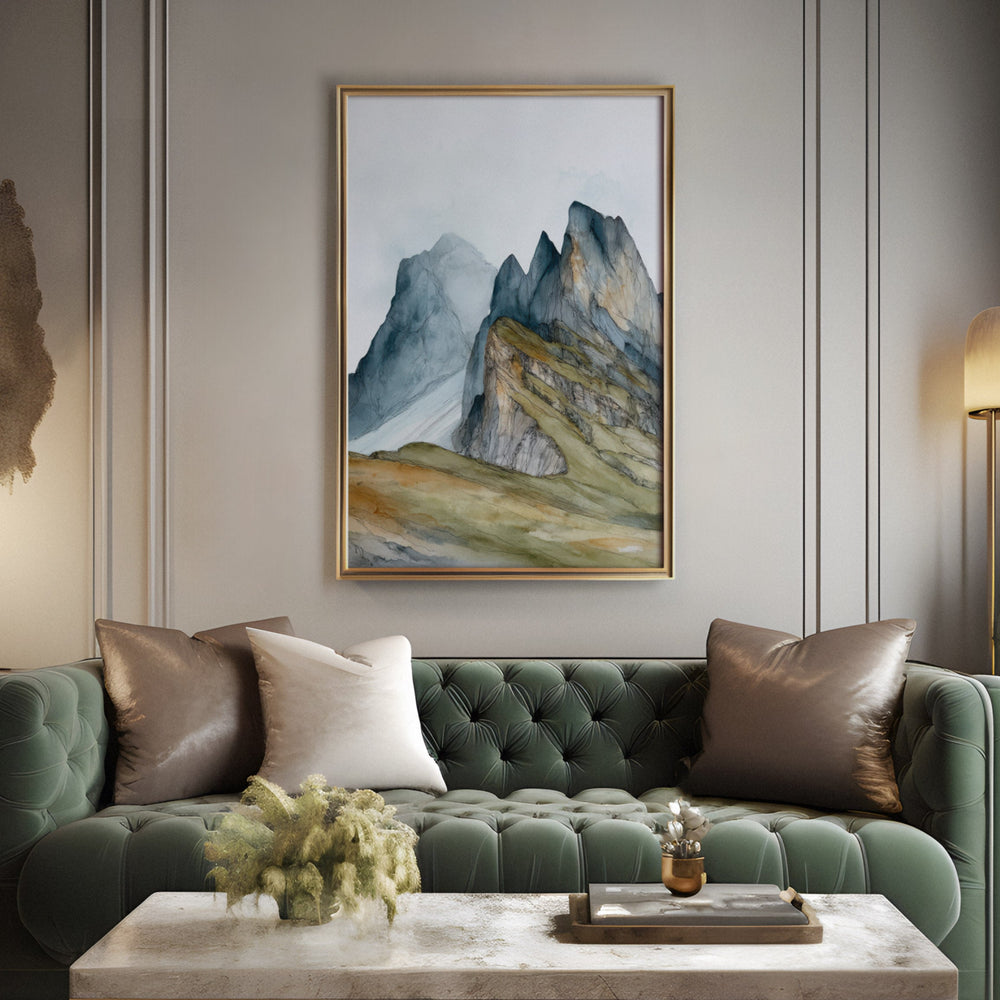 Alpine Serenity - Seceda Ridgeline Watercolor Canvas Print