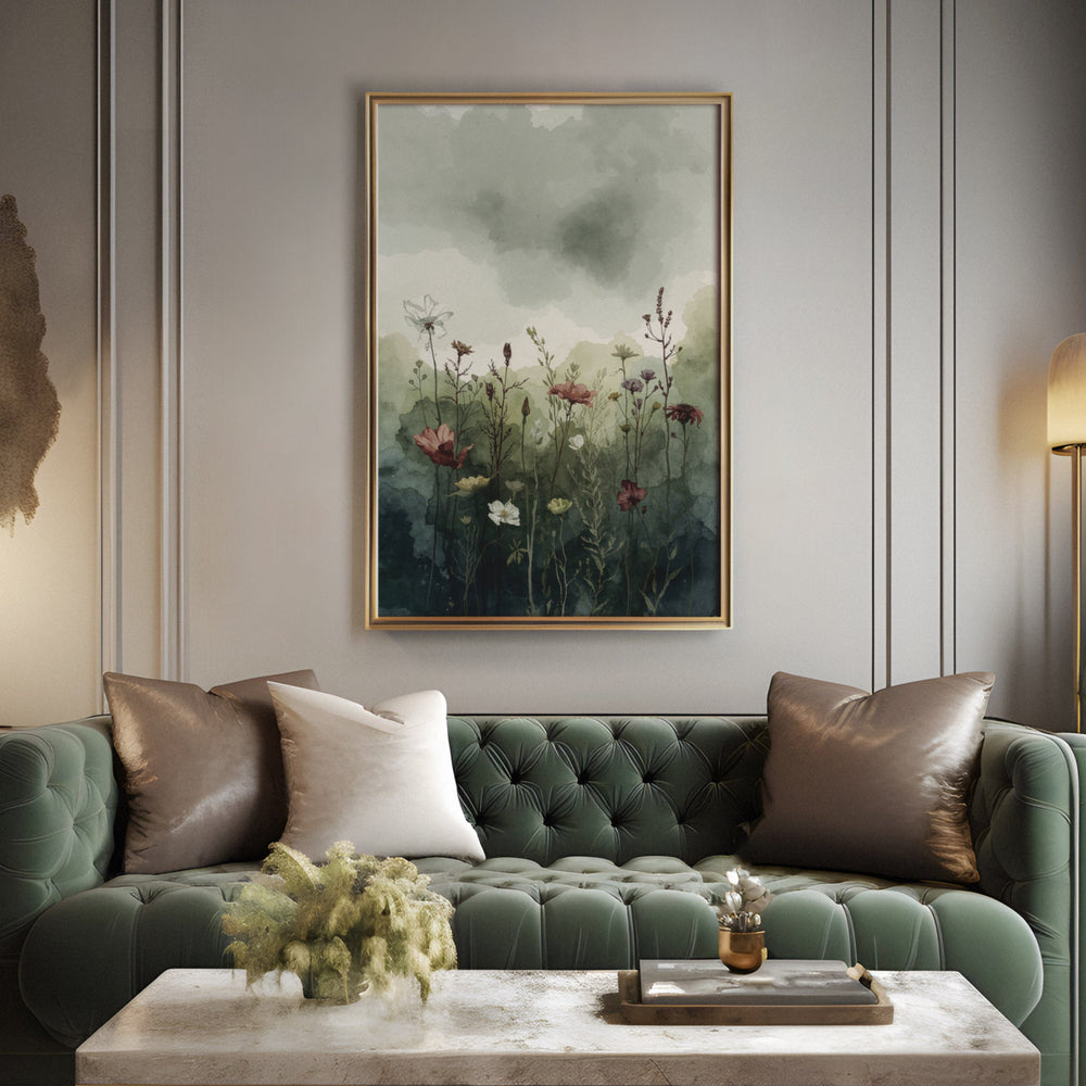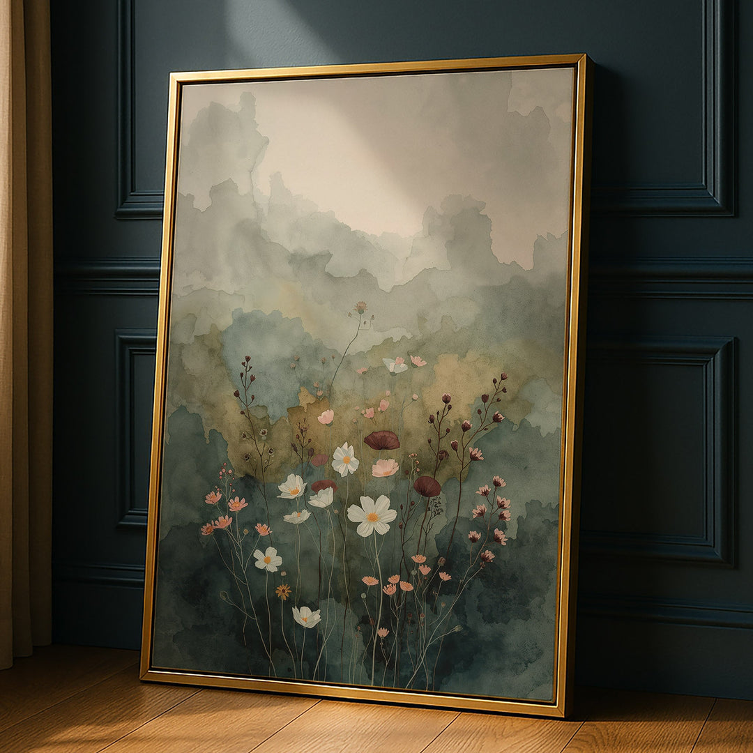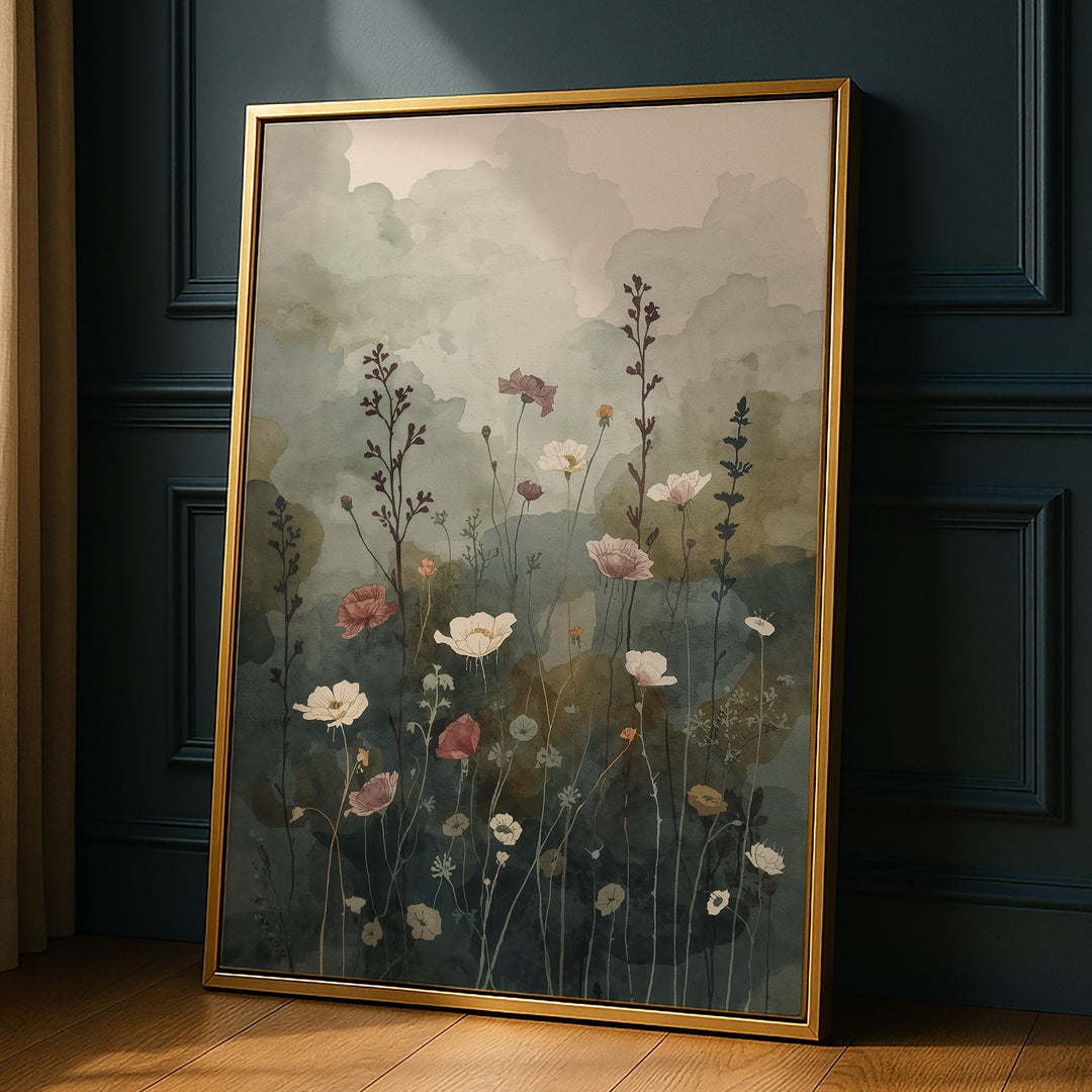 Whispering Meadow Calm - Wildflowers Dark Watercolor Canvas Print