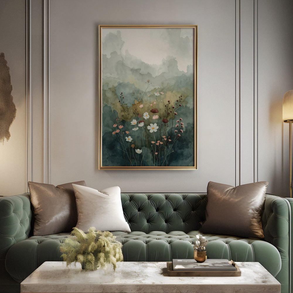Misty Mountain Flora - Floral Foreground Watercolor Canvas Print