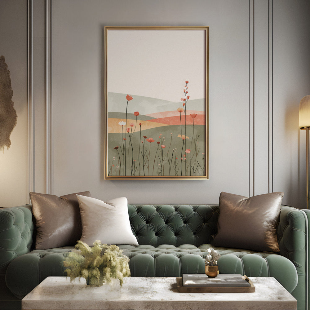 Serene Meadow Bloom - Wildflowers Minimal Abstract Canvas Print
