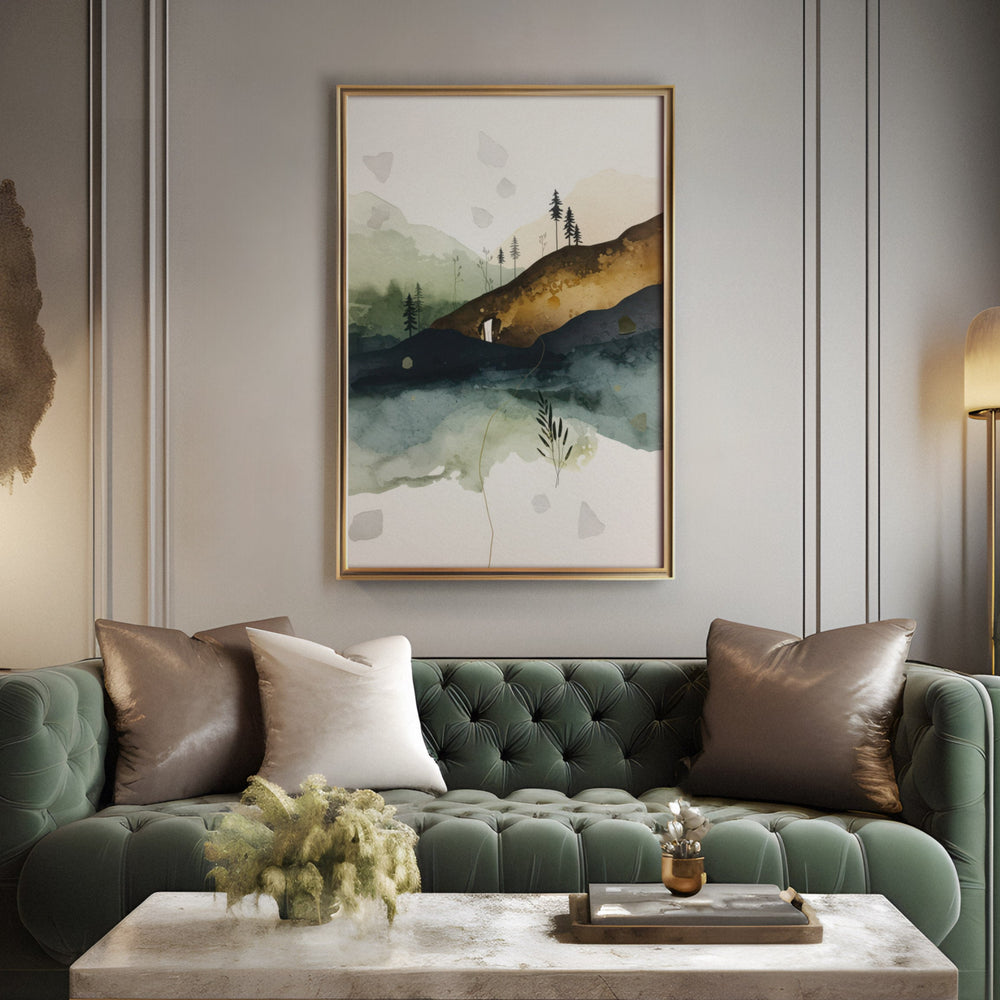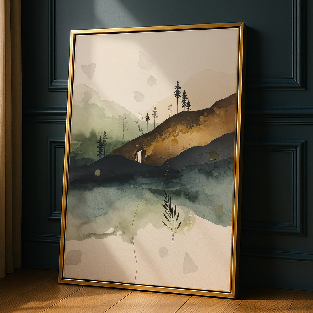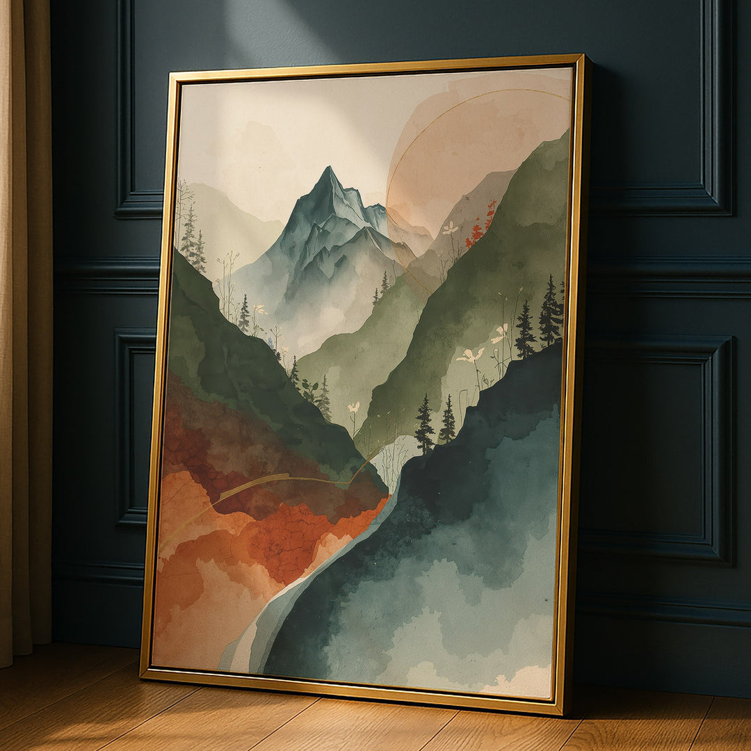 Earthy Alpine Vista - Mountain Foreground Watercolor Canvas Print