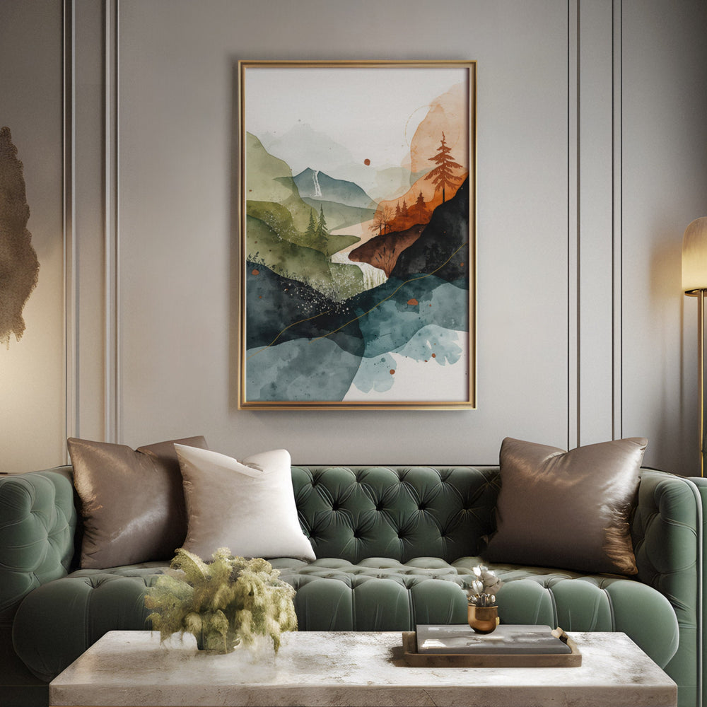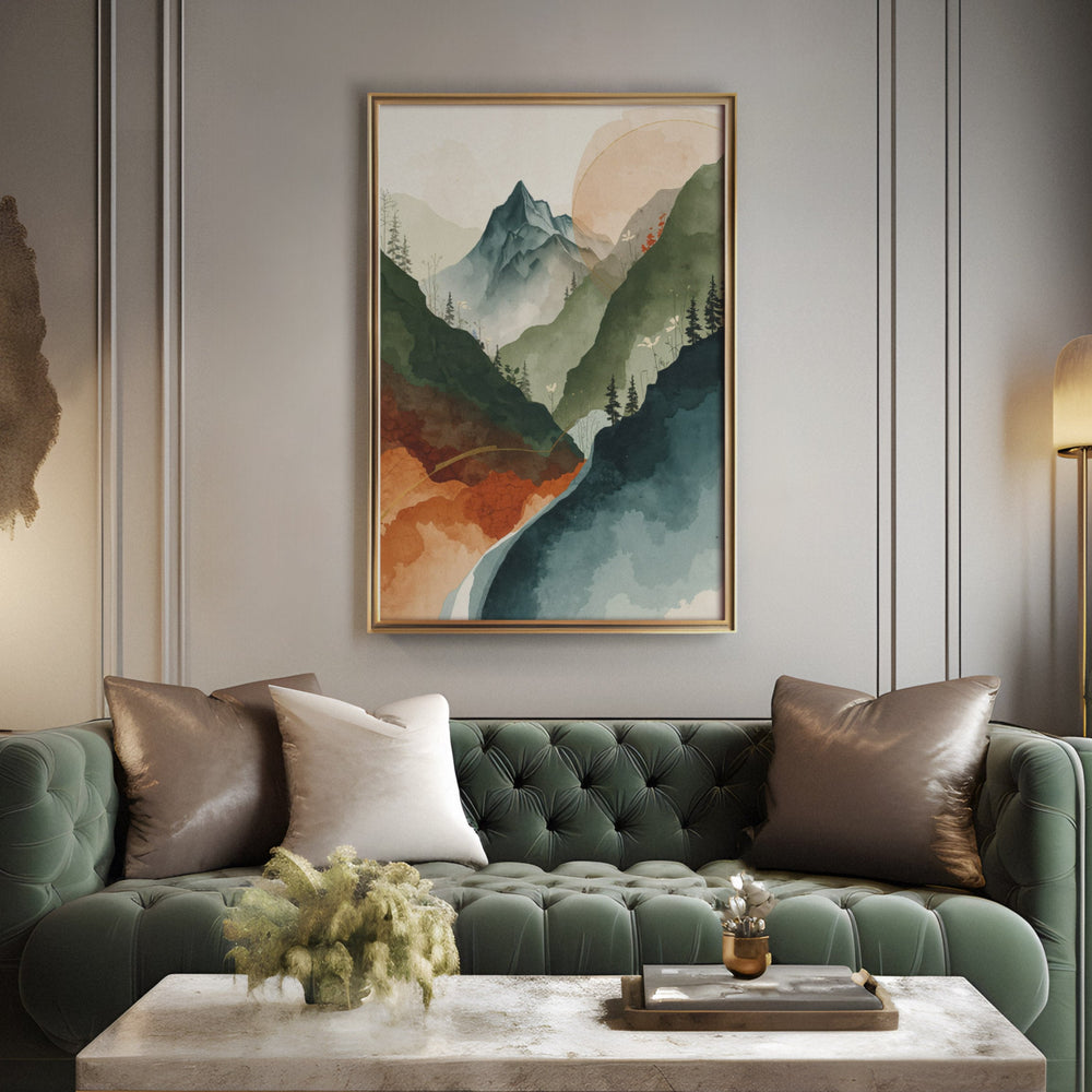 Whispering Valley View - Mountain Layered Watercolor Canvas Print