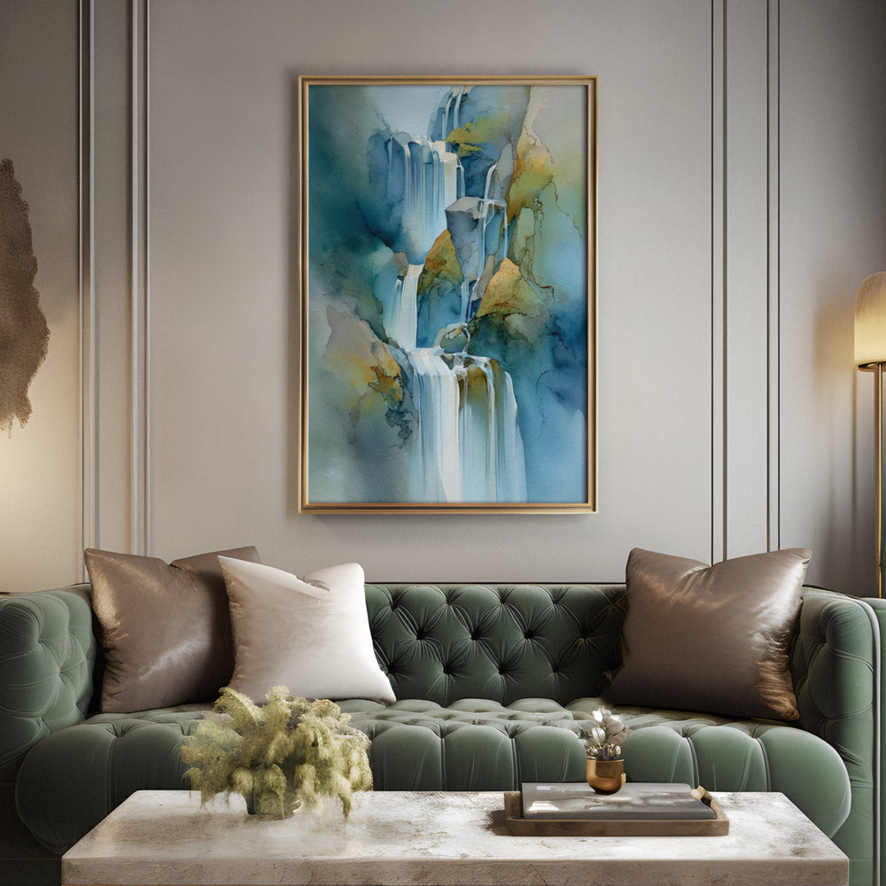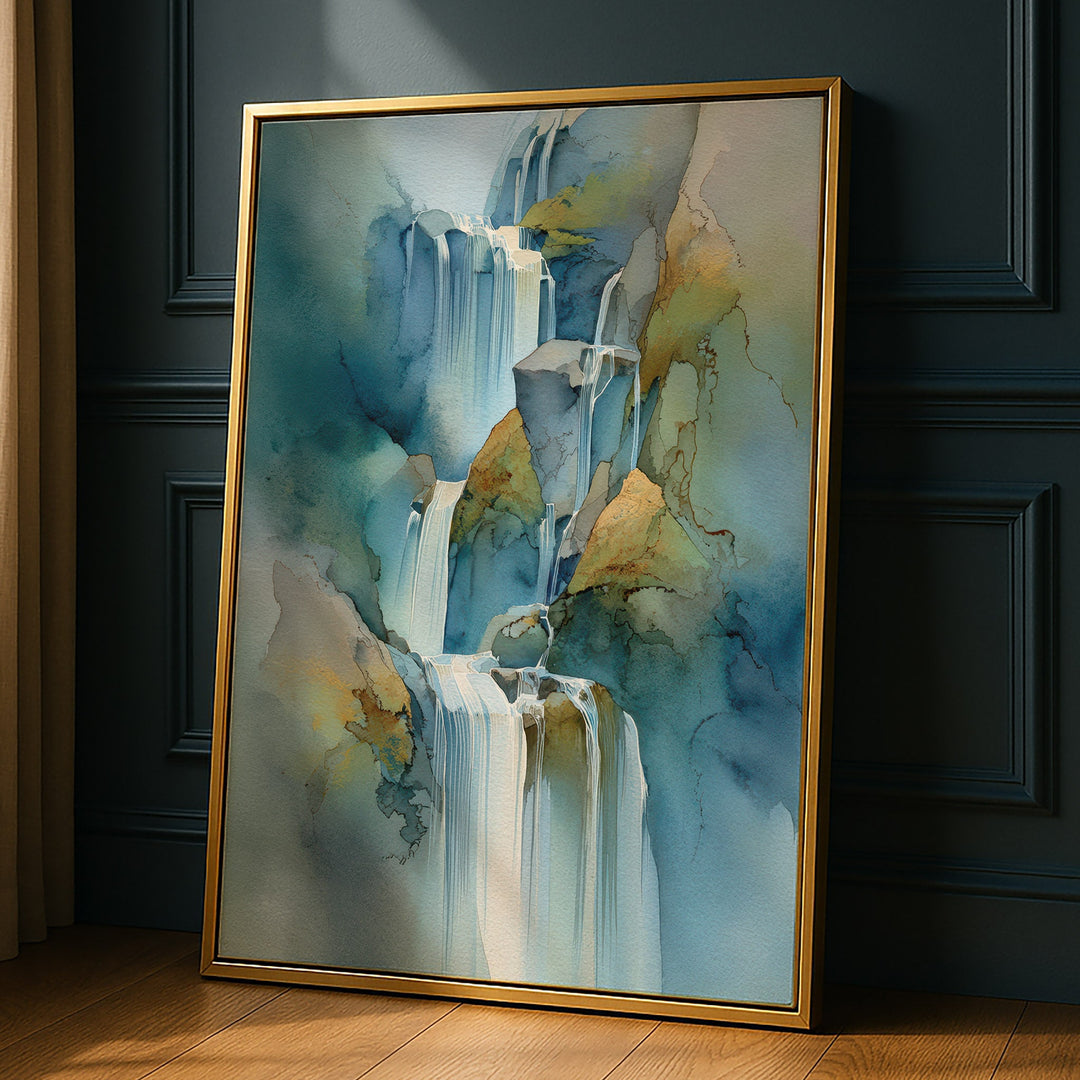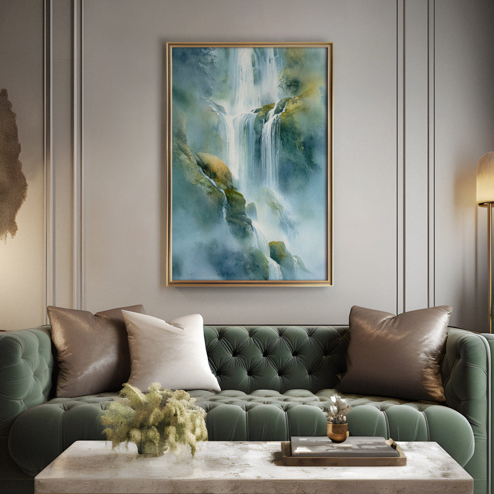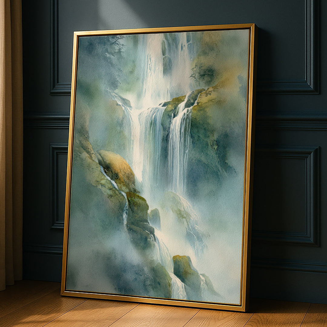 Ethereal Cascade - Waterfall Foreground Watercolor Canvas Print