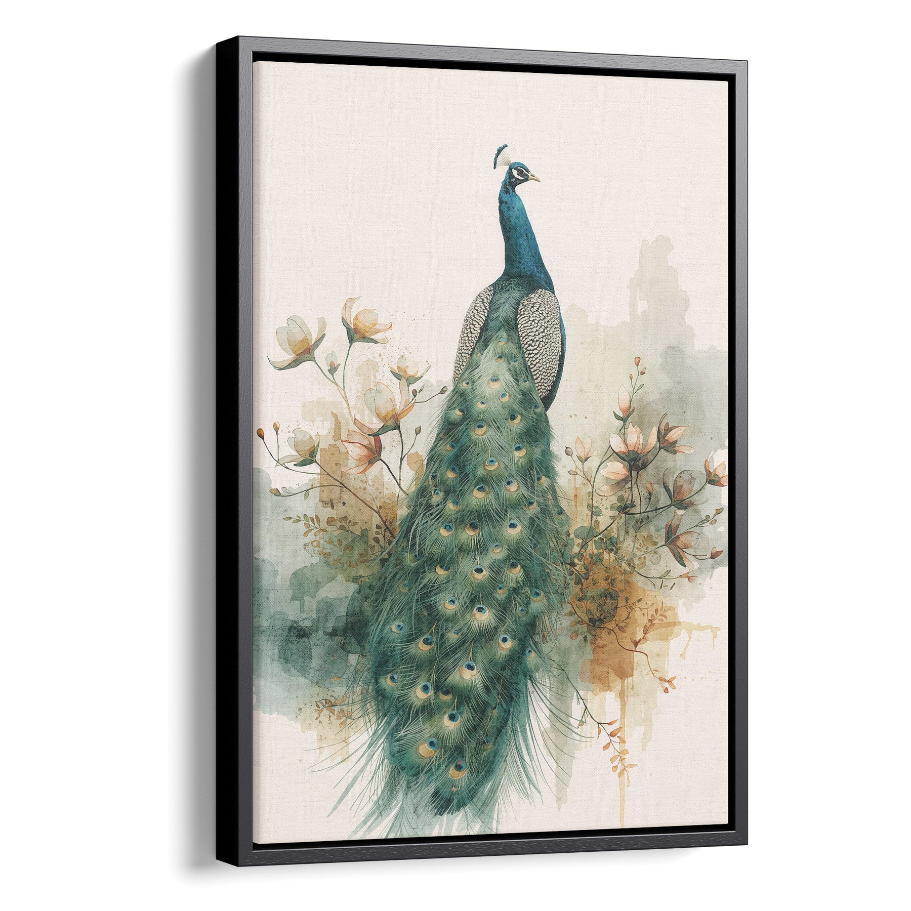 Regal Peacock Plume - Botanical Watercolor Canvas Print
