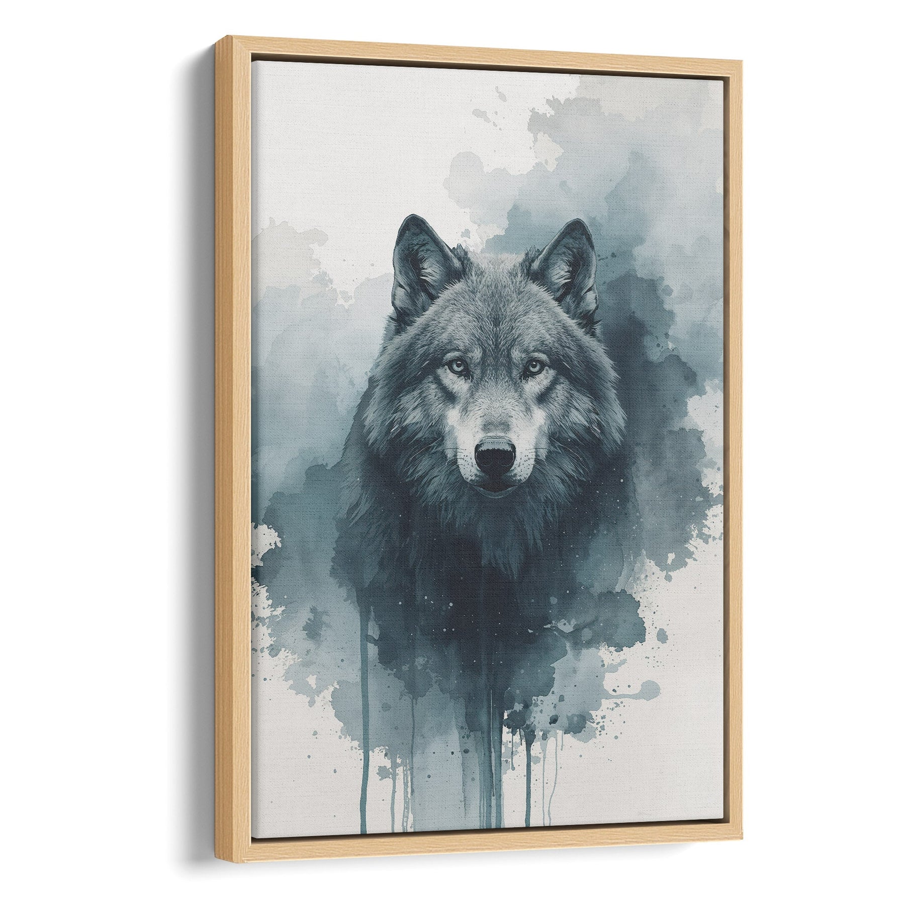 Capture the untamed spirit of the wild with this striking wolf portrait, rendered in a captivating watercolor style. Moody shades of slate blue and charcoal grey blend seamlessly, creating an atmosphere of intense focus and quiet power. This powerful piece is perfect for adding a touch of soulful wilderness to a modern living room, office, or study.